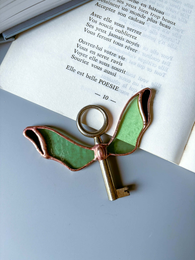 1. Matériaux : verres teintés vert, cuivre, soudure étain, ancienne clé
